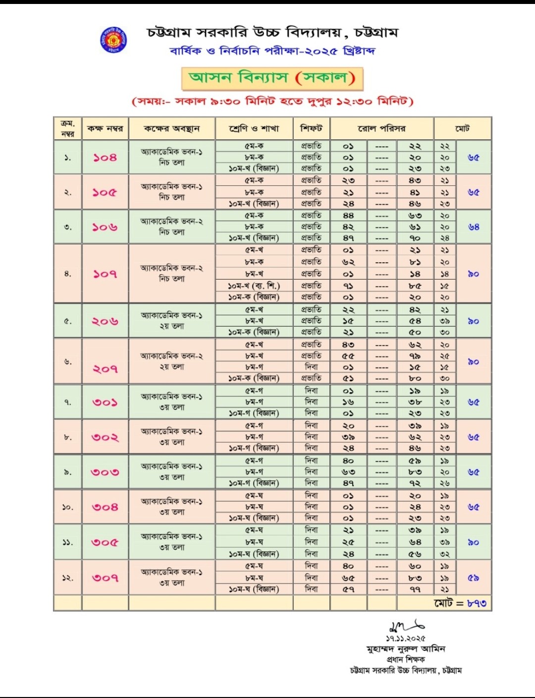বার্ষিক ও নির্বাচনি পরীক্ষার আসন বিন্যাস(সকাল বেলা)