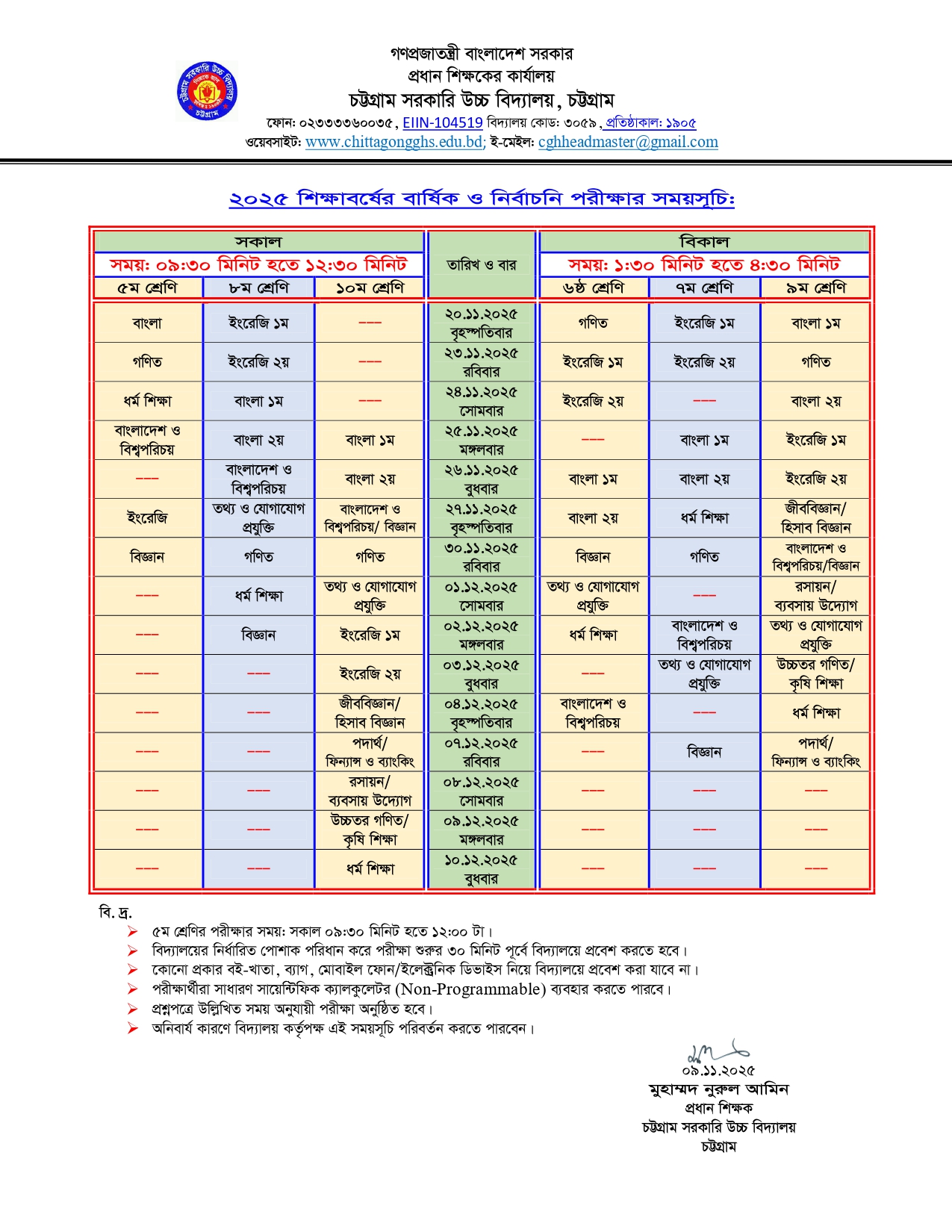 বার্ষিক ও নির্বাচনি পরীক্ষার সময়সূচি-২০২৫ খ্রিষ্টাব্দ